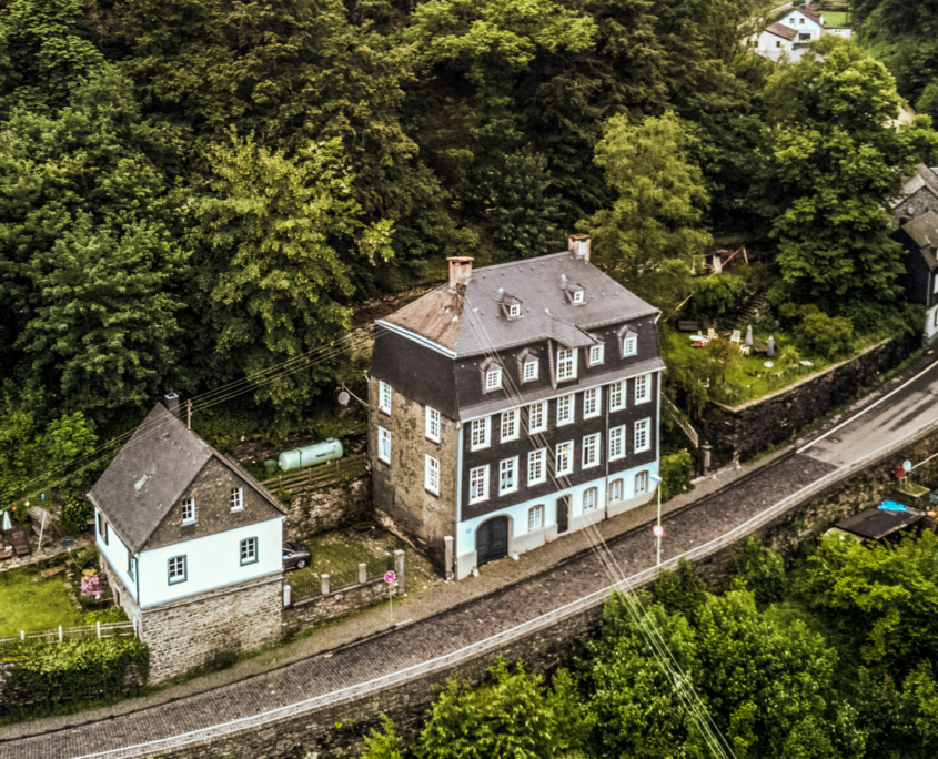 De Villa Rur werd in 1913 gebouwd en diende aanvankelijk als feestzaal voor de vereniging van Monschau. Later werd het gebruikt als gymzaal. De vorige eigenaar van het huis heeft het liefdevol en met veel aandacht voor detail gerenoveerd. Door het hele huis zijn originele voorwerpen uit de gymzaal te vinden, waarvan een deel tot meubilair is omgebouwd.