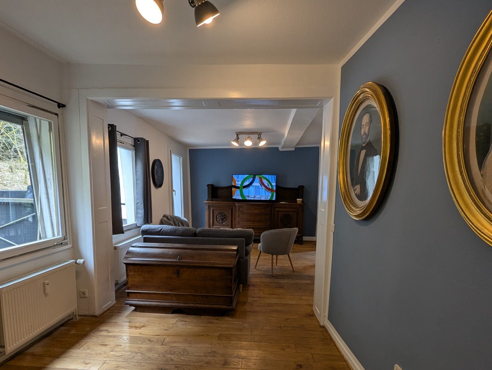 De bijzondere charme van het appartement schuilt in de geslaagde combinatie van oude en nieuwe elementen. De massief eikenhouten vloer, een antieke kast en een sierlijke eikenhouten ladekast geven het appartement een historisch karakter. Deze details harmoniëren prachtig met de moderne elementen zoals het comfortabele boxspringbed, de grote smart-tv en de moderne badkamer.