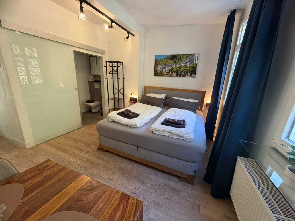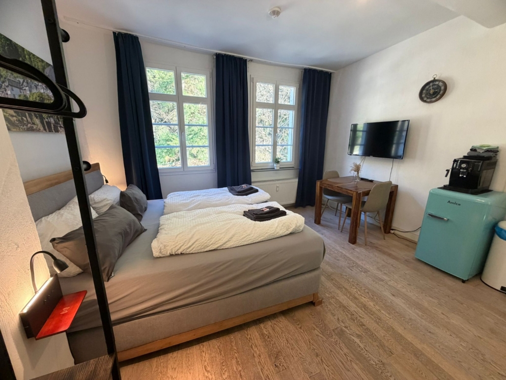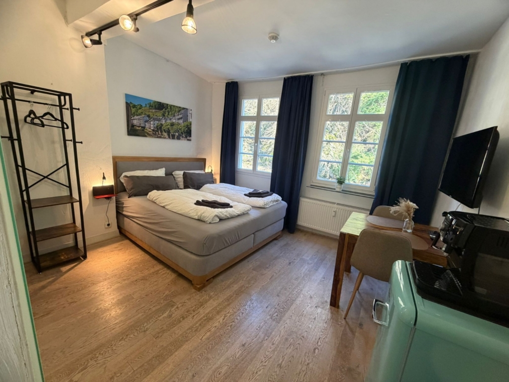 Ein weiteres Highlight des Zimmers ist der traumhafte Blick auf die Rur, der Ihnen eine entspannende und ruhige Umgebung bietet. Hier können Sie den Alltagsstress hinter sich lassen und die Schönheit der Natur genießen.